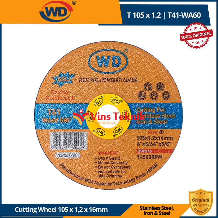 WD T 105 x 1.2 | T41-WA60 Mata Batu Potong 4" Gerinda Besi Cutting Wheel For Stainless Steel, Iron & Steel