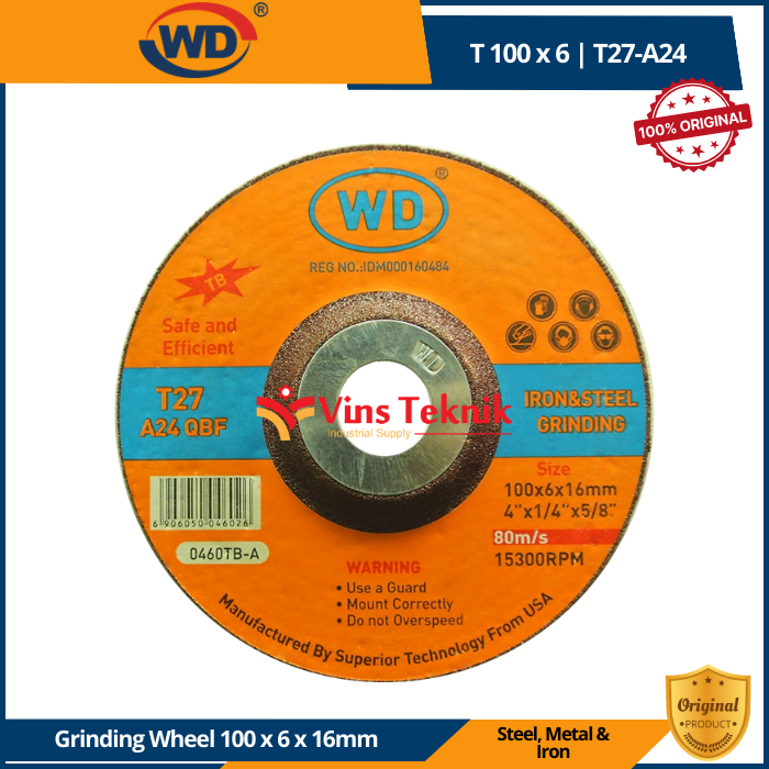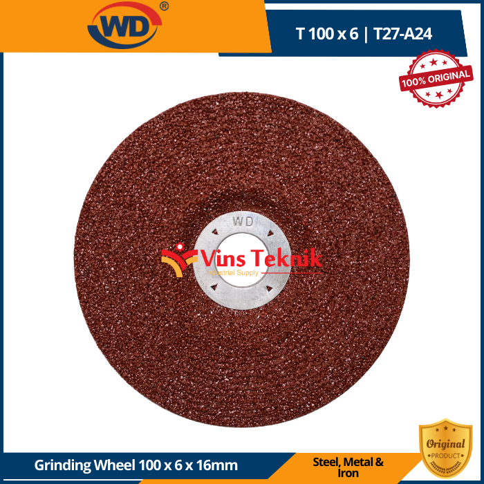 WD T 100 x 6 | T27-A24 Batu Gerinda Poles 4" Metal Grinding Wheel For Iron & Steel Grinding 100x6x16mm